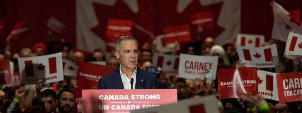 Canadian Prime Minister Mark Carney at a Liberal Party campaign rally in British Columbia in April. (Harrison Ha/Shutterstock.com)