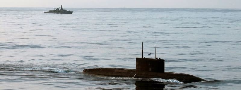 HMS Iron Duke (far left) monitoring the surfaced Russian Kilo-class submarine Novorossiysk. (UK MoD Crown Copyright 2025)