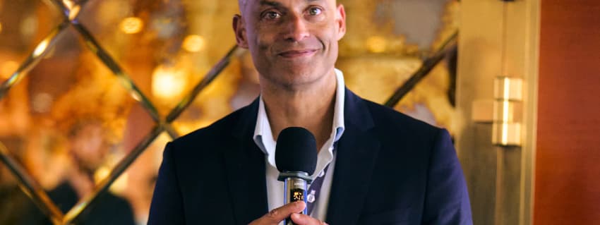 DIANA Managing Director, James Appathurai, speaking at an Innovator x Industry Collider with Apex Defense during DSEI UK. (DSEI UK)