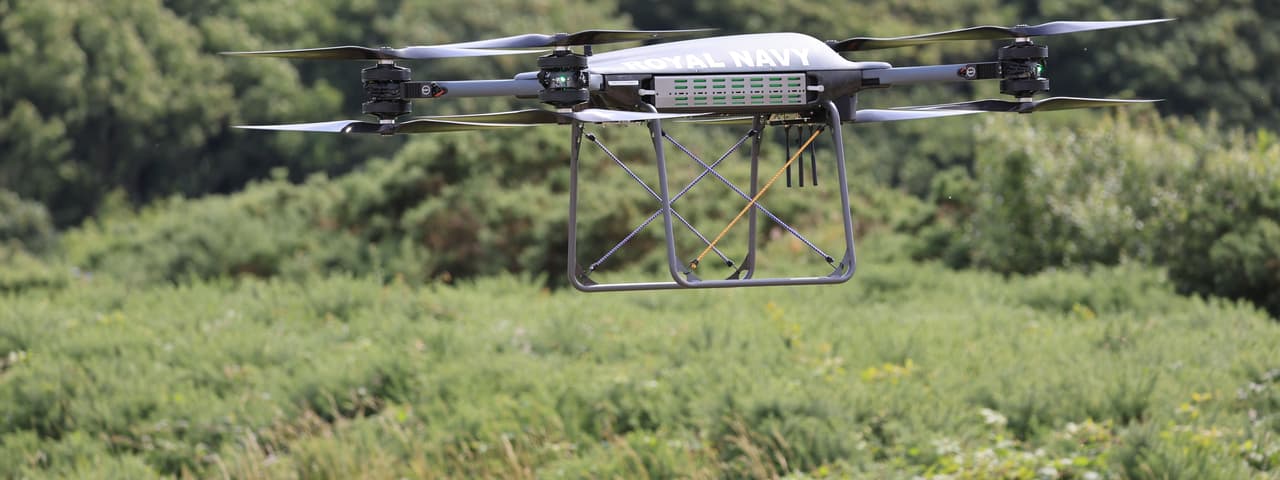 UK-based SME Malloy Aeronautics' Heavy Lift Drone. The company has had notable success recently, winning several UK and US contracts. (UK MOD © Crown copyright 2023).