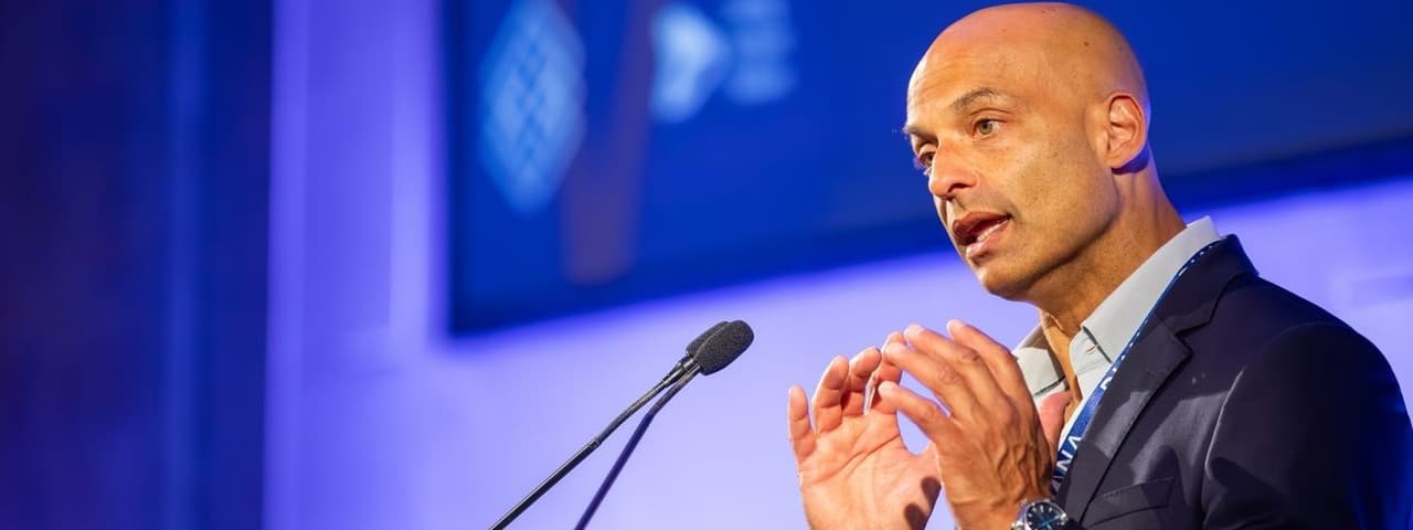 NATO DIANA Interim Managing Director James Appathurai speaking at DIANA's Industry and Investor Demo Days earlier this year. (NATO DIANA)