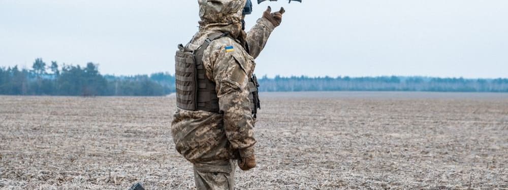 A Ukrainian soldier launches a quadcopter UAV. (Shutterstock)