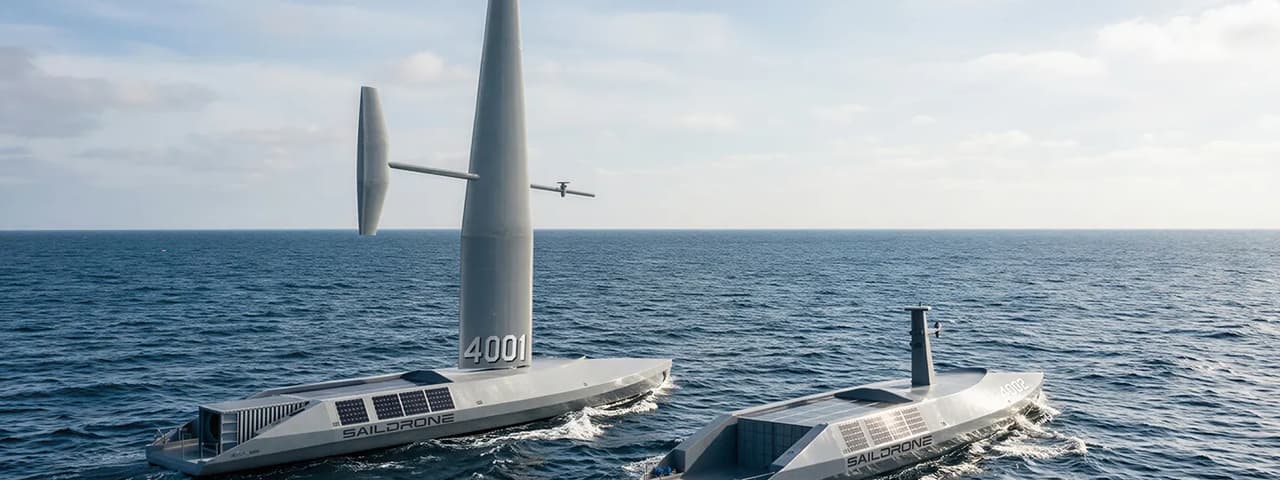 Saildrone also produces the Voyager and Surveyor USVs, both of which use hybrid wind, solar, and diesel propulsion