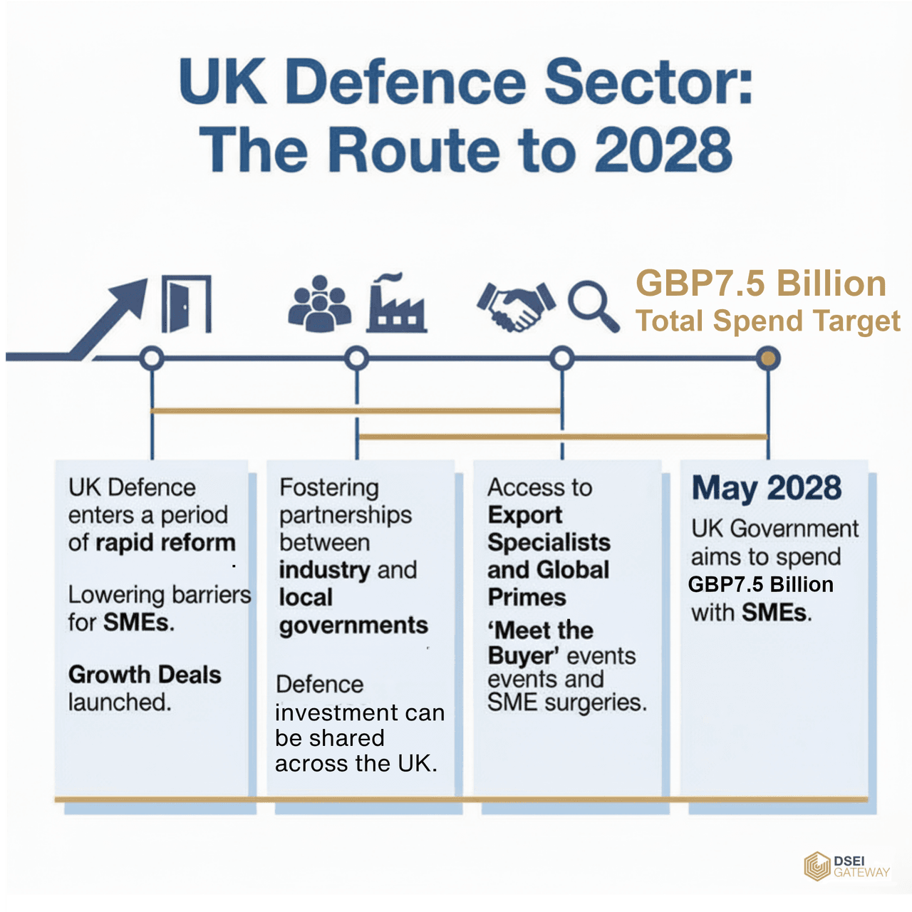The UK Government aims to spend GBP7.5 billion with SMEs by May 2028. This target helps the MoD diversify its supply base and adopt new technology faster.