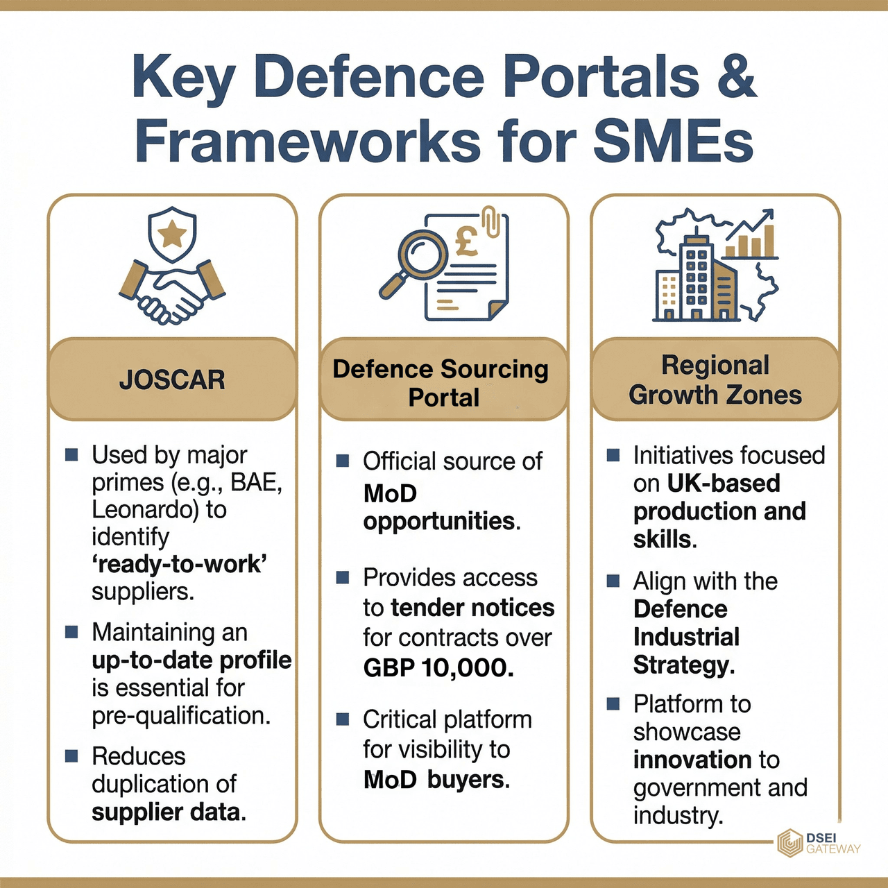 - Regional Growth Zones: New initiatives, such as the Industry Growth Zones, focus on UK-based production and skills development. These zones align with the Defence Industrial Strategy and offer SMEs a platform to showcase innovation to both government and industry leaders.