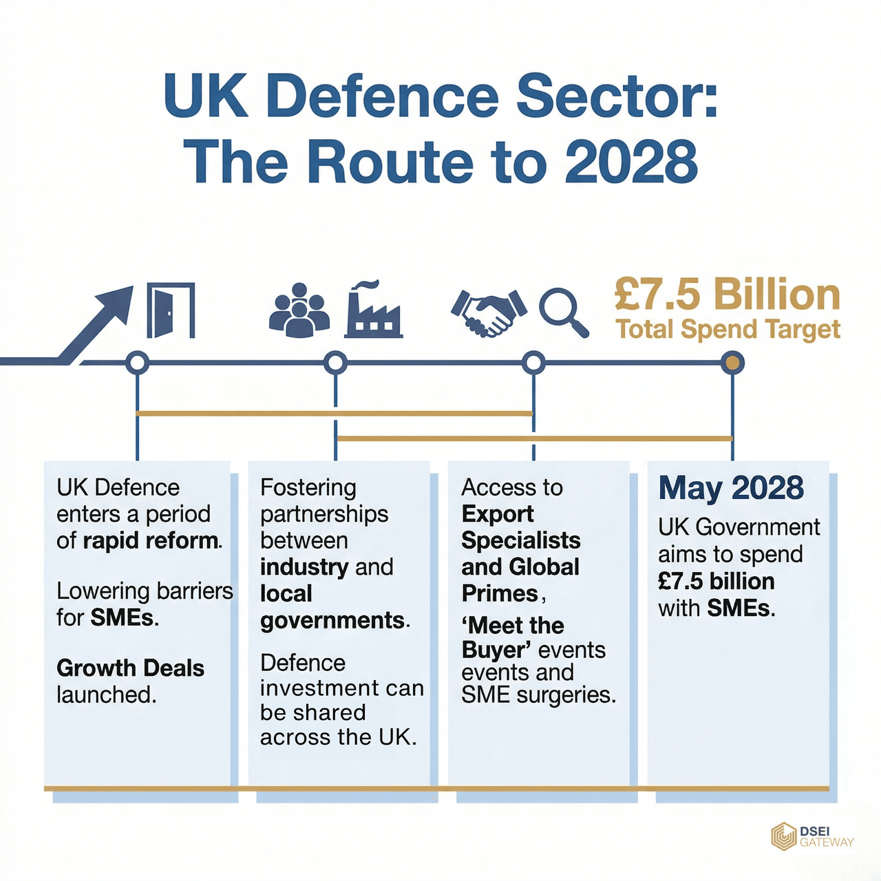 In March, the UK Government announced it is aiming to spend a total of GBP7.5 billion with SMEs, either directly or indirectly, by May 2028 .